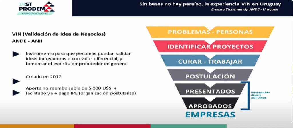 Ernesto Etchemendy, Analista de Emprendimientos de la Agencia Nacional de Desarrollo (ANDE) presentó los resultados de la implementación del programa Validación de ideas de negocios (VIN), que se ejecuta entre ANDE y ANII, la Agencia Nacional de Investigación e Innovación.